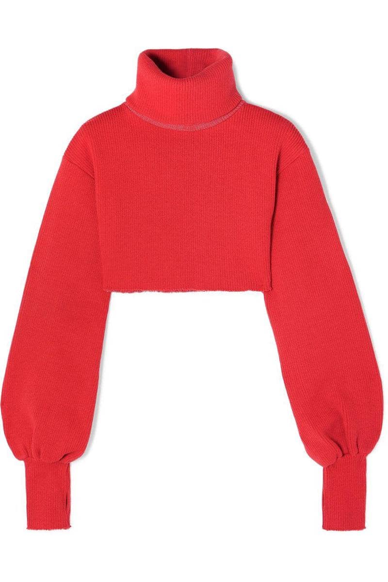 Distressed cropped ribbed-knit turtleneck sweater, Orseund Iris, $553.52