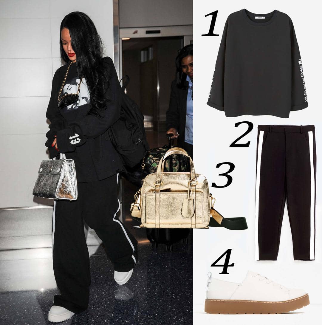 Gaya off-duty, street style, entah apa pun itu, jika kita berbicara soal Rihanna... gayanya sudah tidak perlu diragukan lagi! Hari ini, Rihanna datang menginspirasi dalam balutan busana sporty yang nggak biasa. Mengenakan sweatshirts longgar dari labelnya sendiri, celana olahraga, dan sepatu flatform yang tangguh, sudah cukup keren. Tapi 'cukup' tidak ada di kamus Rihanna, ia menambahkan aksen tas metalik yang kontras dengan warna hitam yang mendominasi. Super keren!