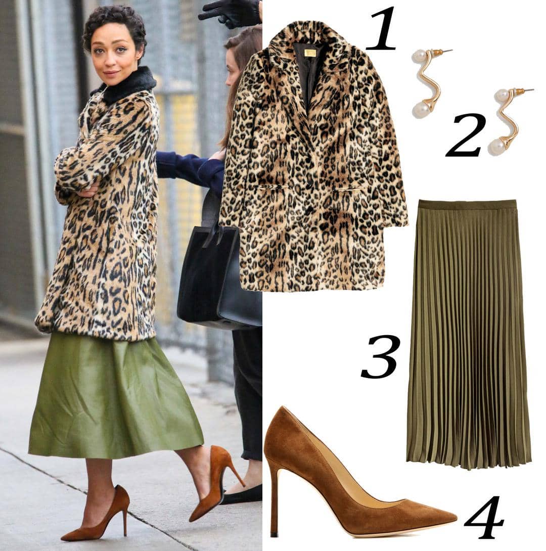 Motif leopard terbukti masih menjadi fashion statement yang kuat di segala musim. Dalam kasus ini, Ruth Negga berhasil menampilkan presentasi gaya street yang terlihat kece. Dipadukan dengan tone warna tanah pada rok dan sepatu hak tingginya, gayanya kali ini tidak berlebihan malah seimbang! Kamu juga bisa meminimalkan gaya ini dengan mengaplikasikan aksesori yang sederhana.
