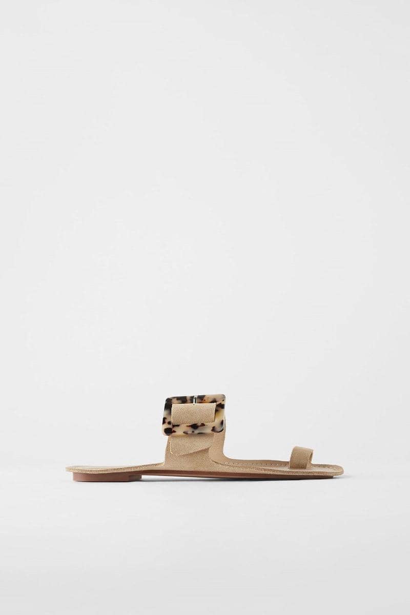 Leather flat sandals with tortoiseshell buckle, ZARA, IDR 899.900