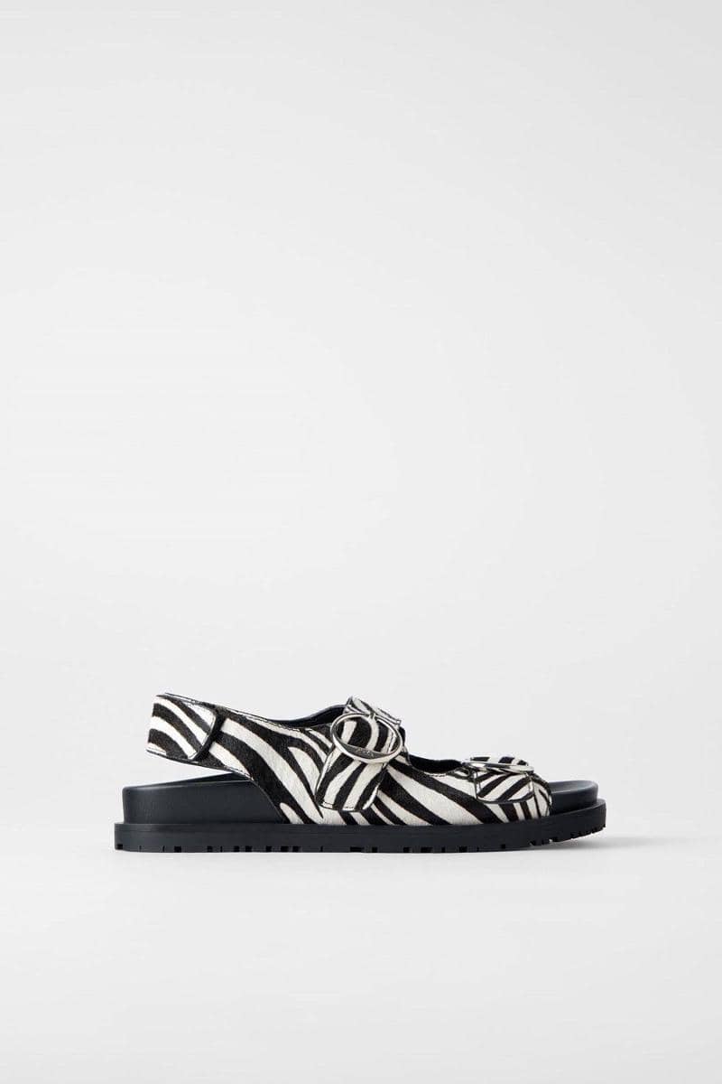 Animal print leather flat sandal with buckles, ZARA, IDR 1.199.900