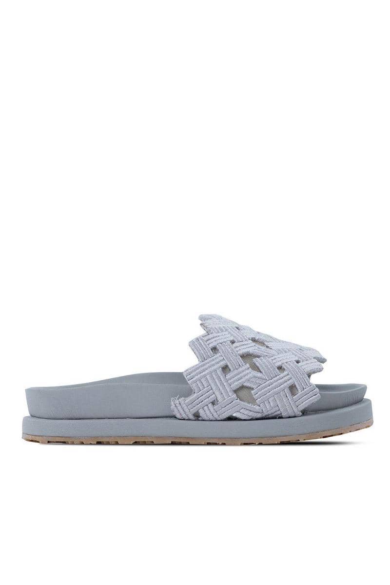Grey embroidered pool slides, Sapto Djojokartiko, IDR 2.320.000