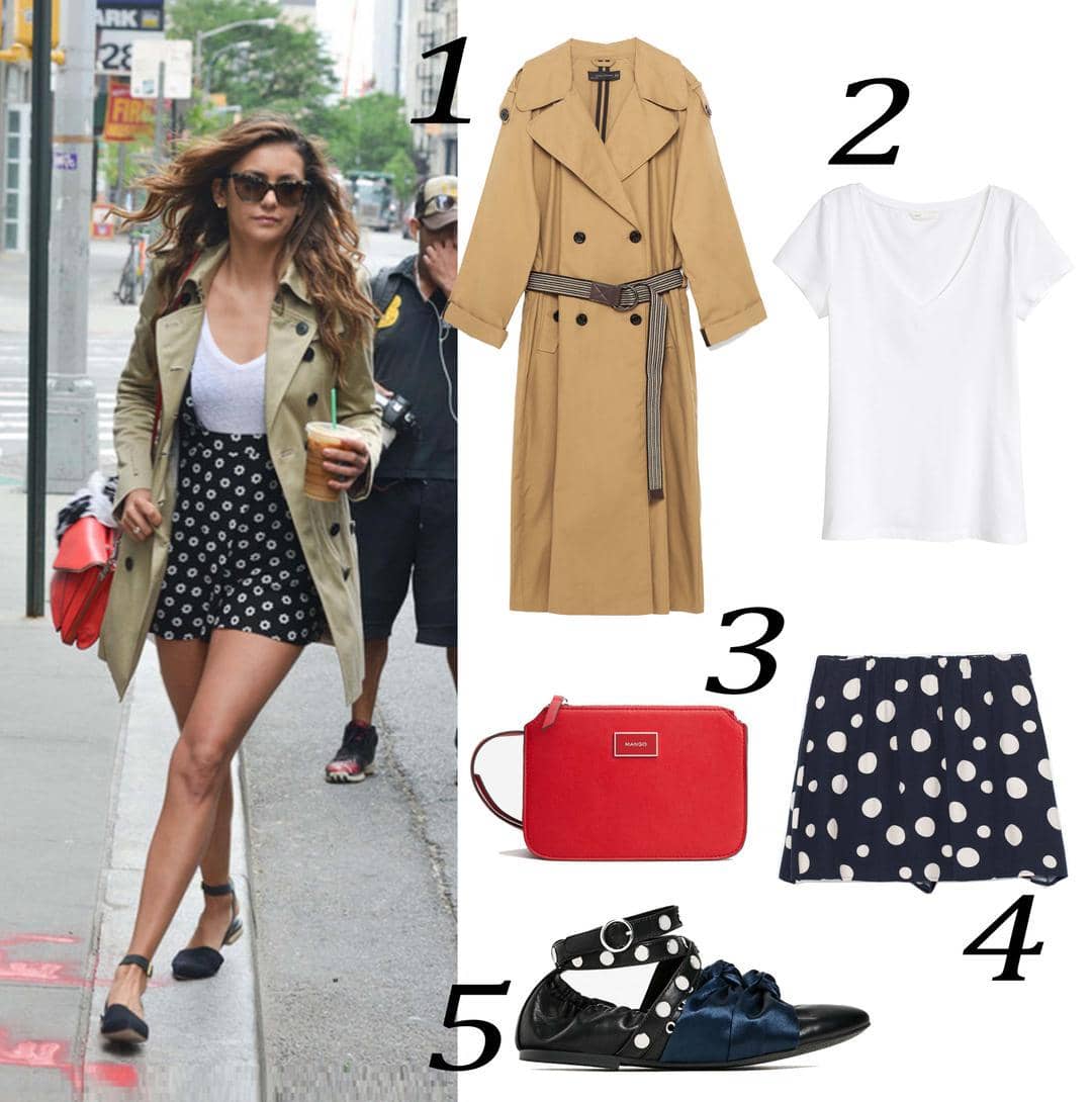Beradaptasi dengan cuaca yang kurang bisa diprediksi - sebentar panas, lalu tiba-tiba hujan - gaya kita pun dituntut untuk harus lebih fleksibel. Kali ini idenya datang dari gaya Nina Dobrev. Dimana ia terlihat modis dalam balutan trench coat yang dikombinasikan dengan t-shirt polos dengan celana pendek bermotif. Rasa nyaman pun semakin didukung dengan mengenakan sepatu flats. Sekarang kamu nggak perlu khawatir kepanasan saat sedang terik atau kedinginan saat hujan datang menyerang.