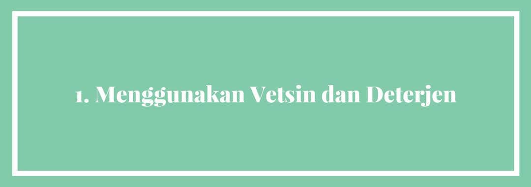 Cara pertama yang bisa kamu lakukan untuk mengatasi noda luntur adalah dengan vetsin dan deterjen. Kamu hanya perlu menyiapkan ember yang berisi air hangat, lalu campurkan vetsin dan deterjen. Rendam baju yang terkena noda luntur ke dalam larutan tersebut. Biarkan selama 30 menit, atau tergantung tingkat kesulitannya. Lalu bilas dengan air dingin, dan cuci seperti biasa.