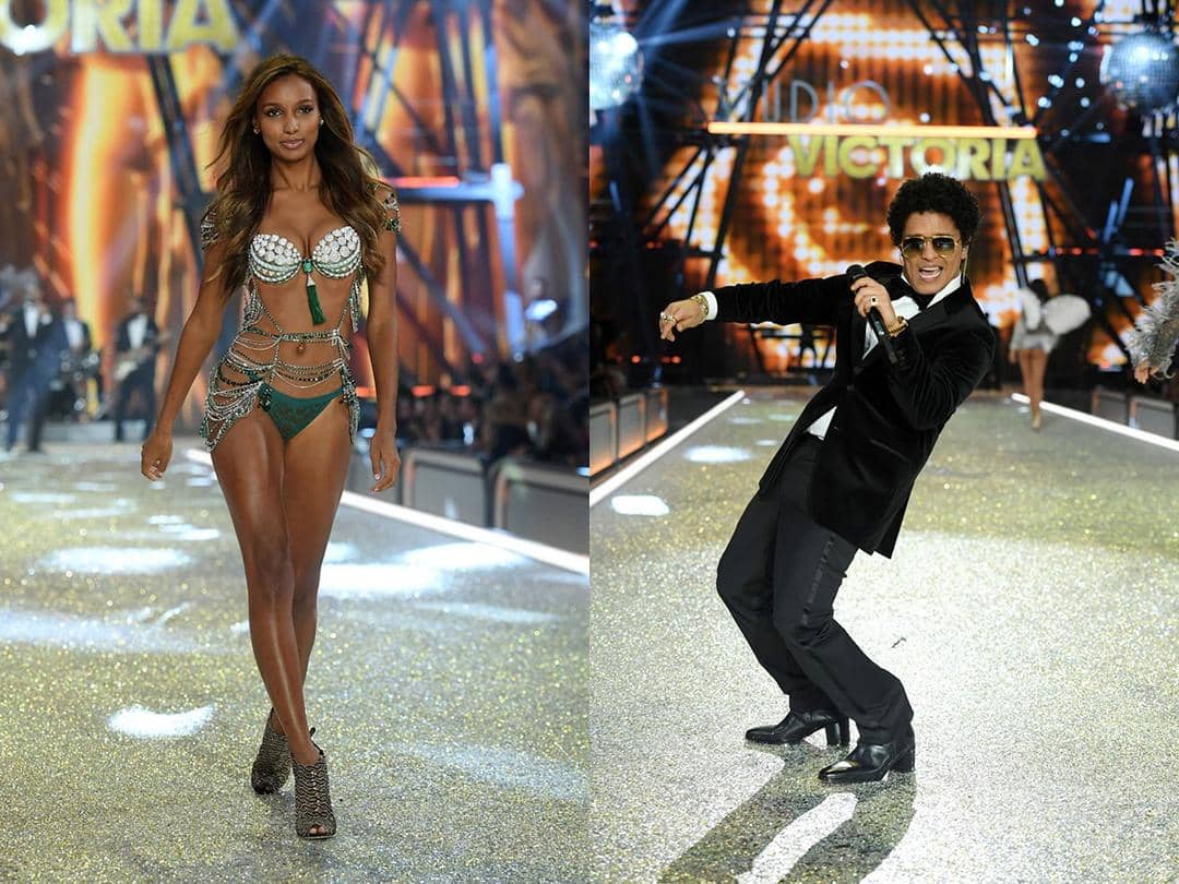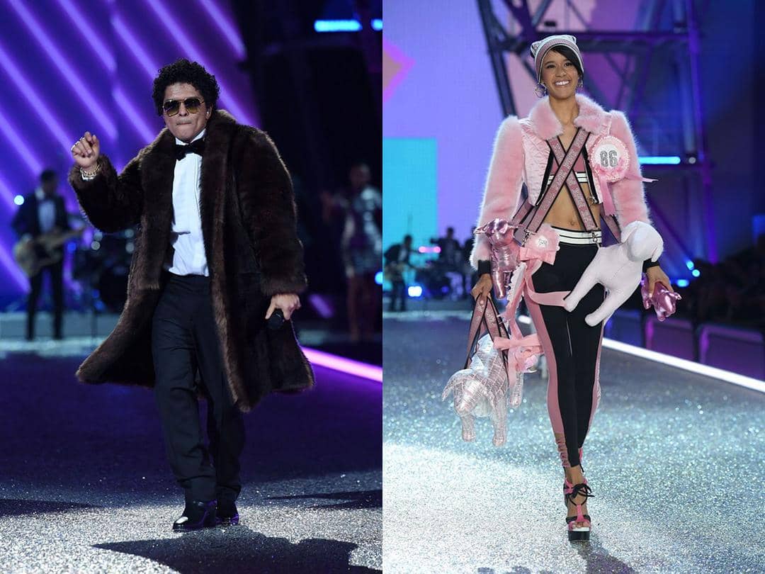 4. Bruno Mars juga tak kalah seru mengiringi para bidadari yang berjalan di atas runway.