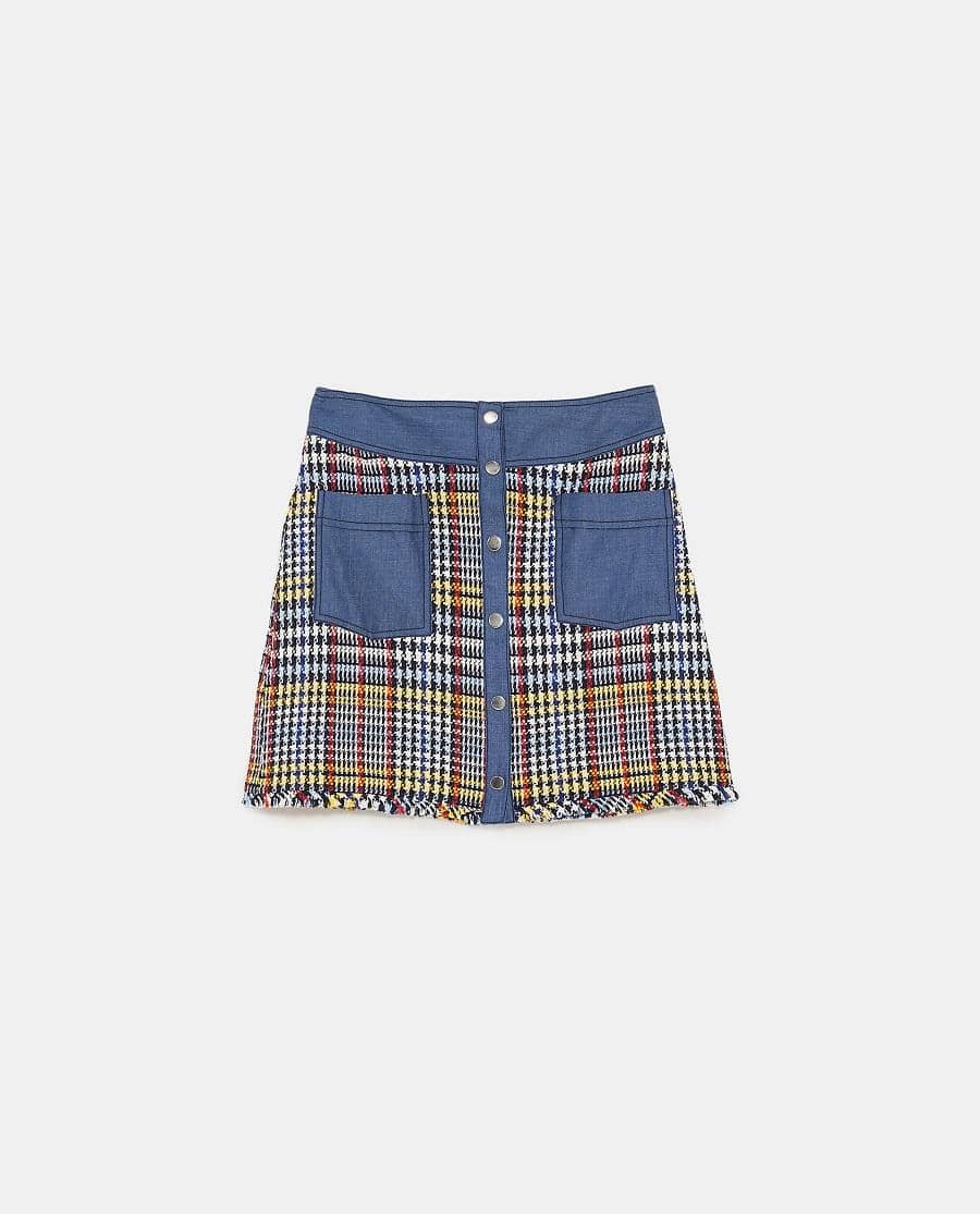 Color-block printed pleated skirt, Bershka, IDR 299,900