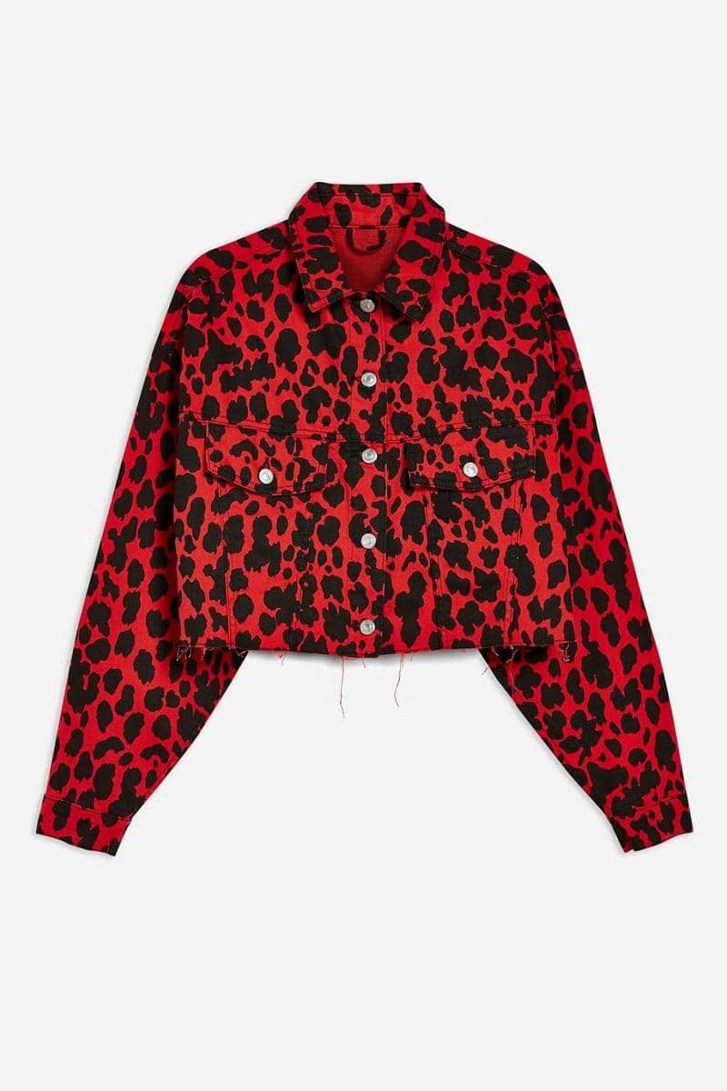 Red leopard denim jacket, Topshop, $85.00