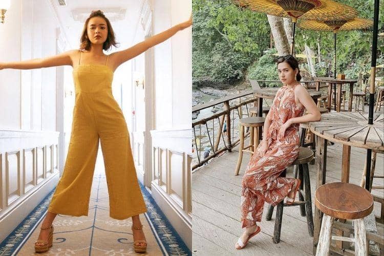 2. Amanda Manopo lebih memilih gunakan jumpsuit warna kuning dimana Mayang Yuditta dengan sentuhan motif.