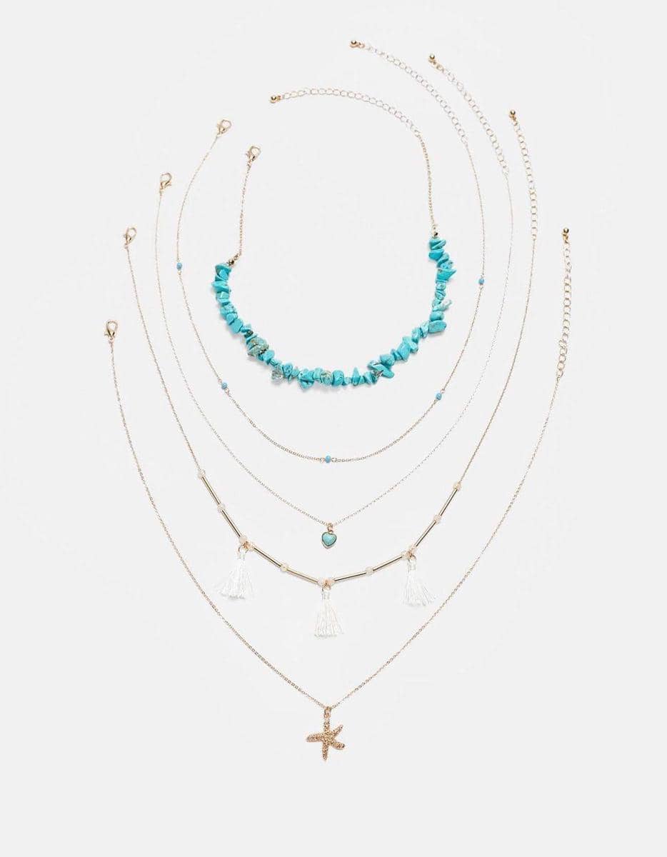 Set of 5 stone and tassel necklaces, Stradivarius, IDR 189,900