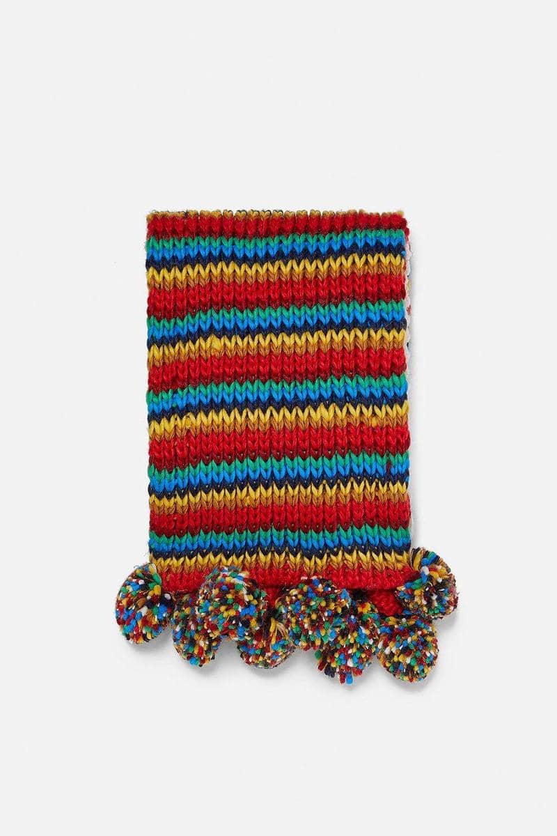 Patchwork scarf with pompoms, ZARA, IDR 549,900