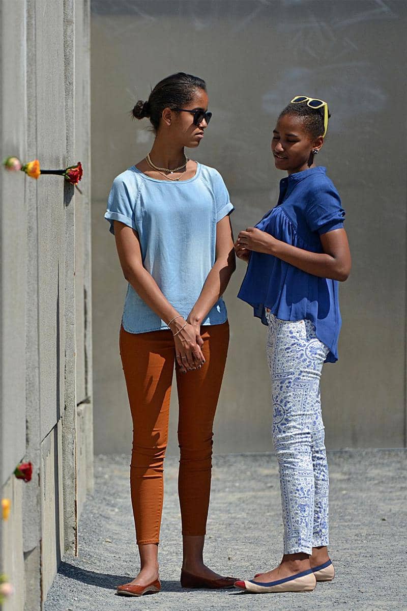 Menikmati saat santai, Malia dan Sasha memilih mengenakan basic tee dan flats shoes yang super nyaman.
