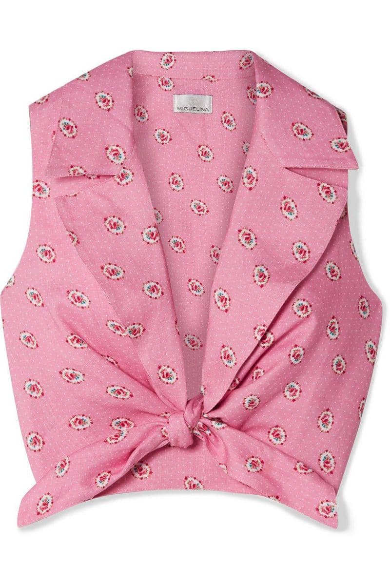 Jill cropped tie-front printed linen top, Miguelina, $309