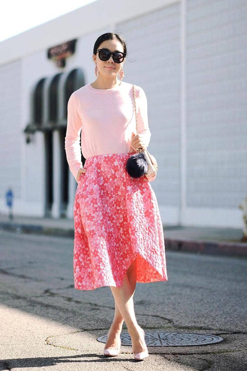 4. Midi skirt akan menampilkan sisi girly-mu. Jangan lupa gunakan heels sebagai pasangannya yah.