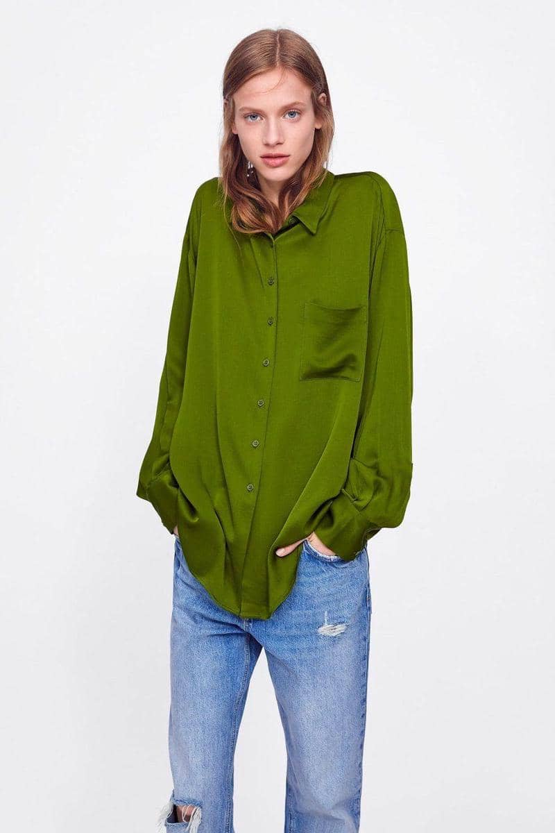 Satin-finish shirt with pocket, ZARA, IDR 659,900