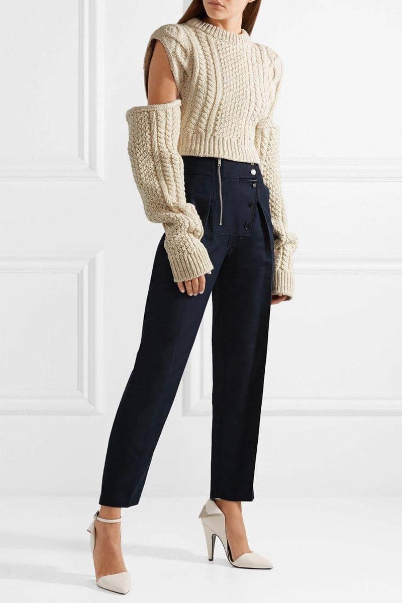 Cold-shoulder cropped cable-knit wool-blend sweater, CALVIN KLEIN 205W39NYC, $455
