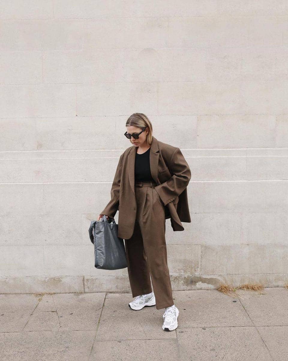 3. Kombinasikan oversized suit-set dengan sepatu olahraga akan membuat gayamu saat ke kantor tampak beda dari biasanya. Siap-siap makin keren deh!
