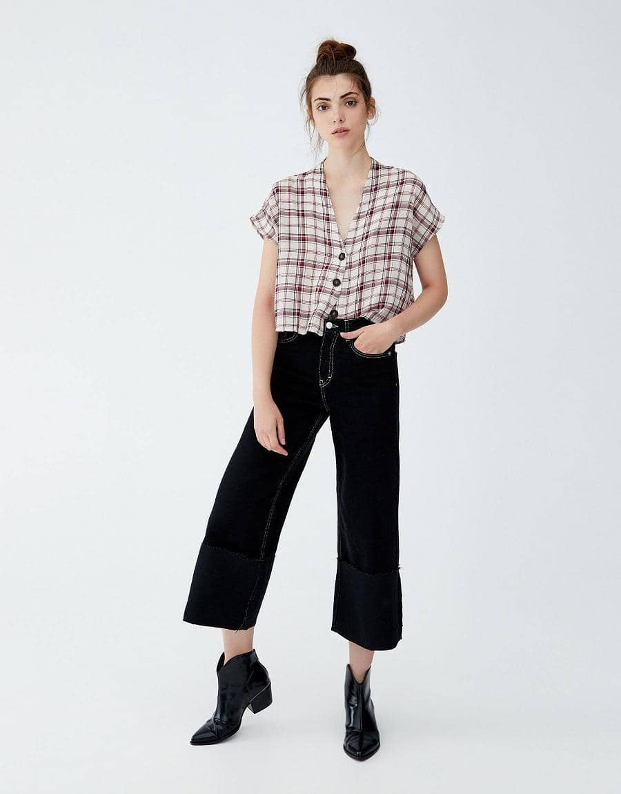Cropped wide-leg jeans, Pull & Bear, IDR 559,900