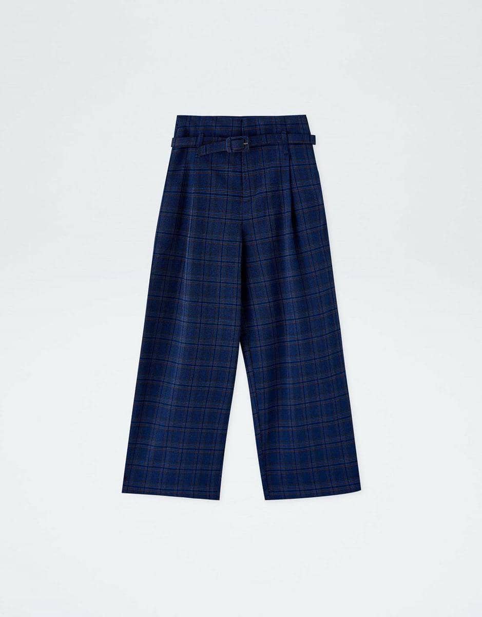 Navy blue check paper bag trousers, Pull & Bear, IDR 179,900