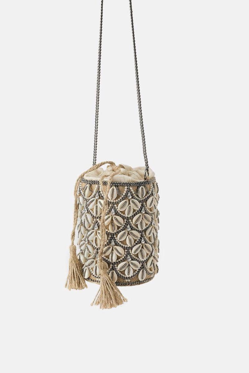 Straw crossbody bag with seashells, ZARA, IDR 899,900