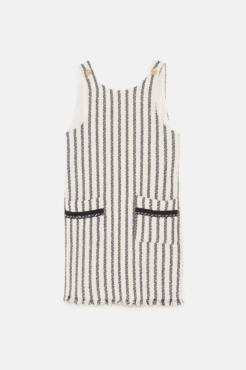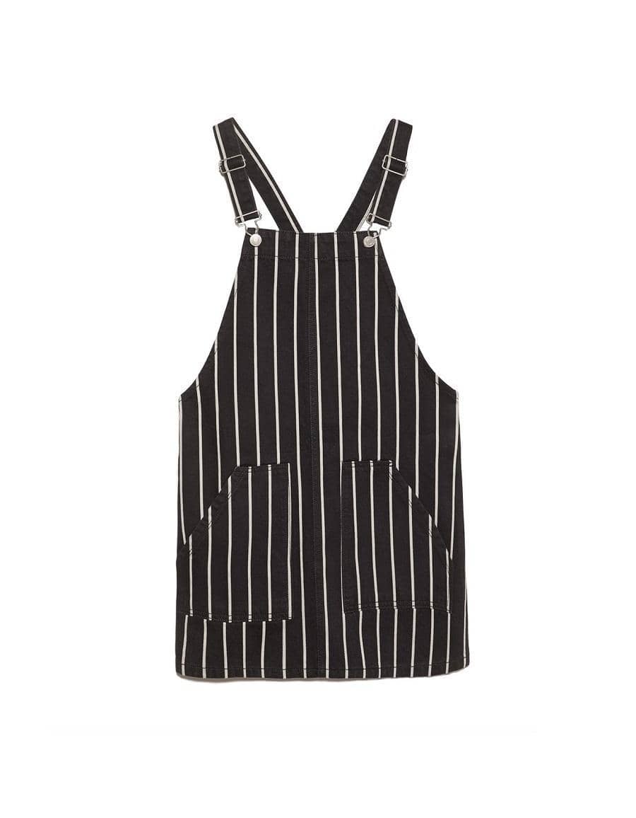 Striped denim pinafore dress, Stradivarius, IDR 399,900