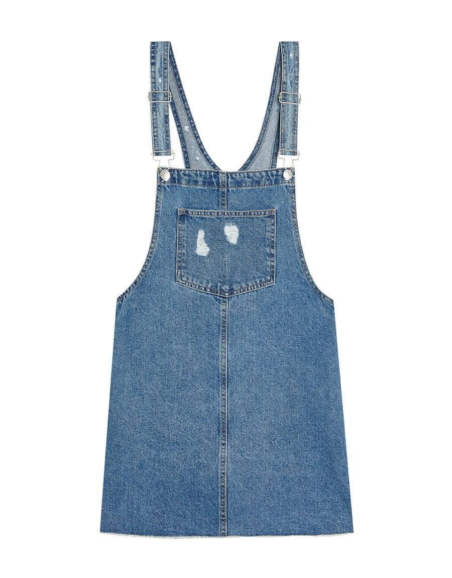 Denim pinafore dress with unfinished hem, Pull&Bear, IDR 399,900