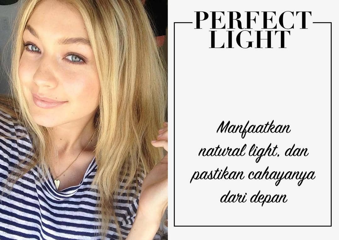 Ternyata rahasia supaya wajah terlihat flawless saat difoto adalah pencahayaan yang tepat! Contoh Gigi Hadid yang berfoto di depan jendela kamarnya. Cahaya natural yang kena ke wajah akan membuat kamu lebih cling!