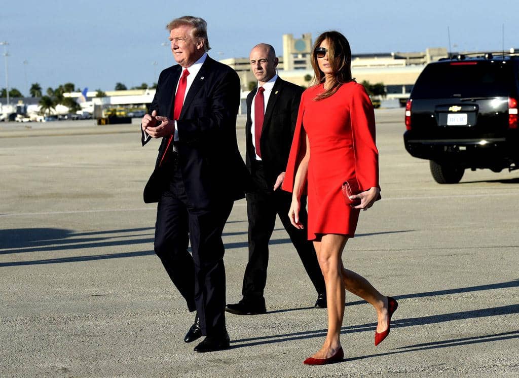 Saat Melania Trump dan sang suami tiba di Florida setelah hari pelantikan, semestinya menjadi waktu yang tepat untuk mengenakan busana karya desainer Amerika. Namun nyatanya tidak. "Dress merah tersebut... hasil rancangan Givenchy, yang merupakan brand asal Prancis, ini menjadi kemunculan perdana Melania Trump setelah sang suami melangkah pertama kalinya sebagai Presiden dan berkata aturan pertama ku adalah membeli produk Amerika," tambah Friedman.