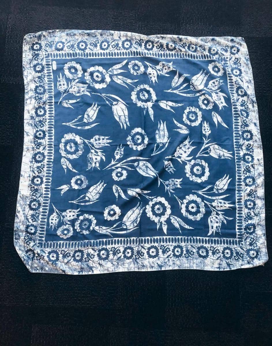 Sebelum mulai, siapkan dahulu peralatan yang dibutuhkan untuk membuat tas. Percaya nggak percaya, aku hanya memerlukan satu buah scarf persegi saja lho! Supaya menarik, aku memilih scarf dengan bahan satin yang memiliki motif floral.