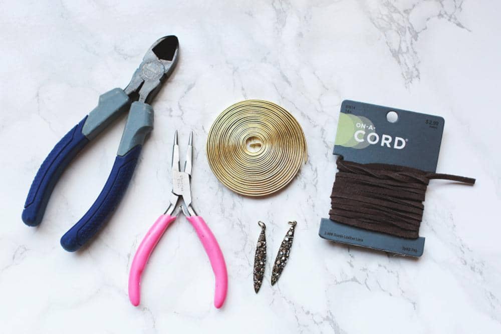 1. Langkah pertama potong tali berbahan kulit, sesuaikan dengan panjang leher kamu dan keinginanmu. Kemudian, potong kawat emas kamu dengan ukuran 1-1.5 cm
