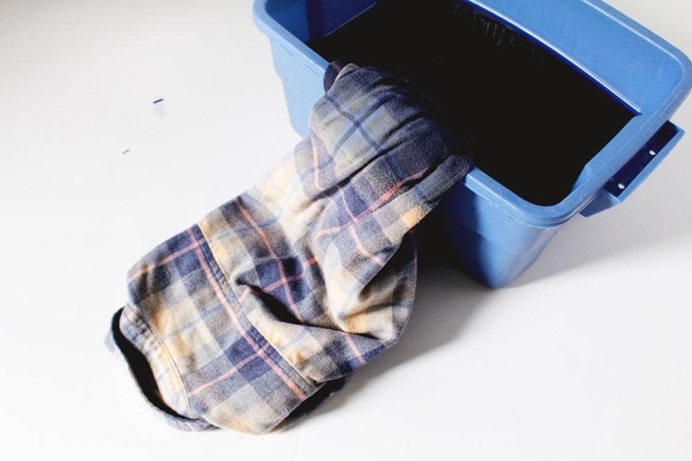 3. Langkah selanjutnya, sediakan air di dalam ember yang sudah dicampur dengan larutan fabric dye tadi ya. Terakhir, rendam bagian bawah kemeja flanel kamu ke dalam cairan ember yang telah bercampur dengan warna. Biarkan selama beberapa menit. keringkan dan kemeja flanel kamu siap dipakai deh Bela.