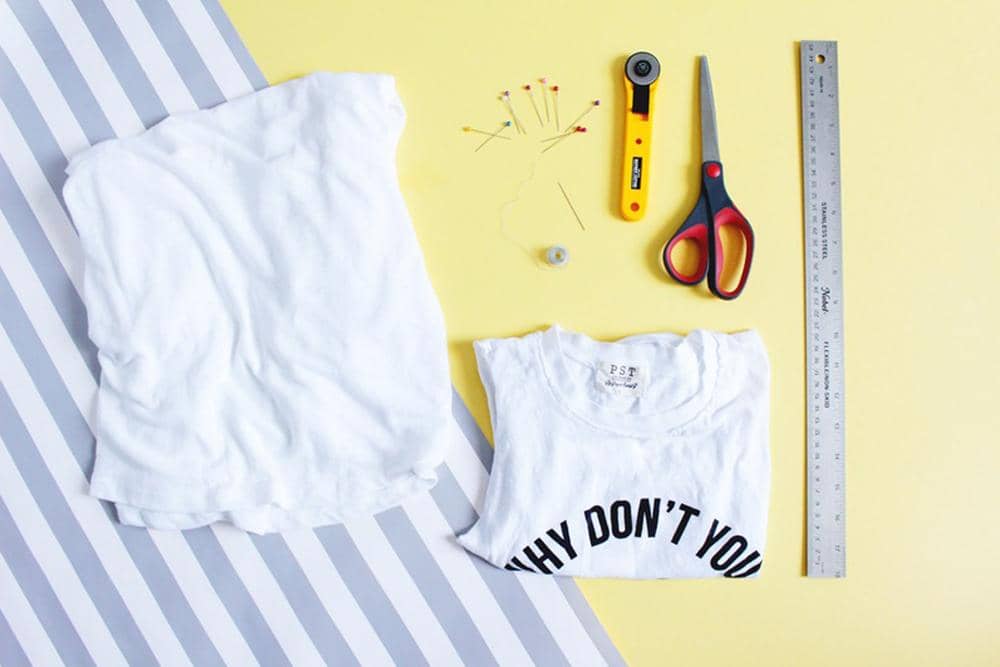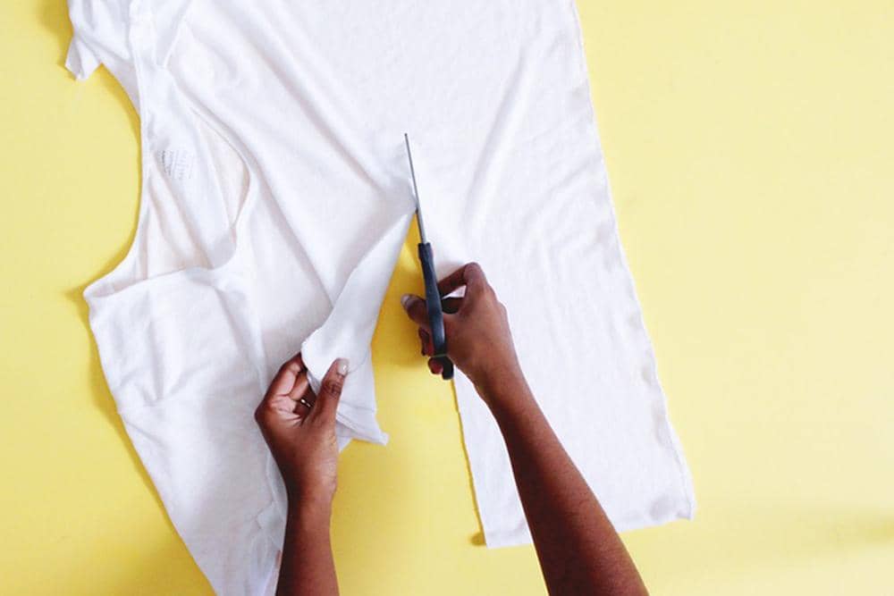 1. Langkah pertama yang harus kamu lakukan adalah, memotong kaos xl kamu dengan gunting kain.