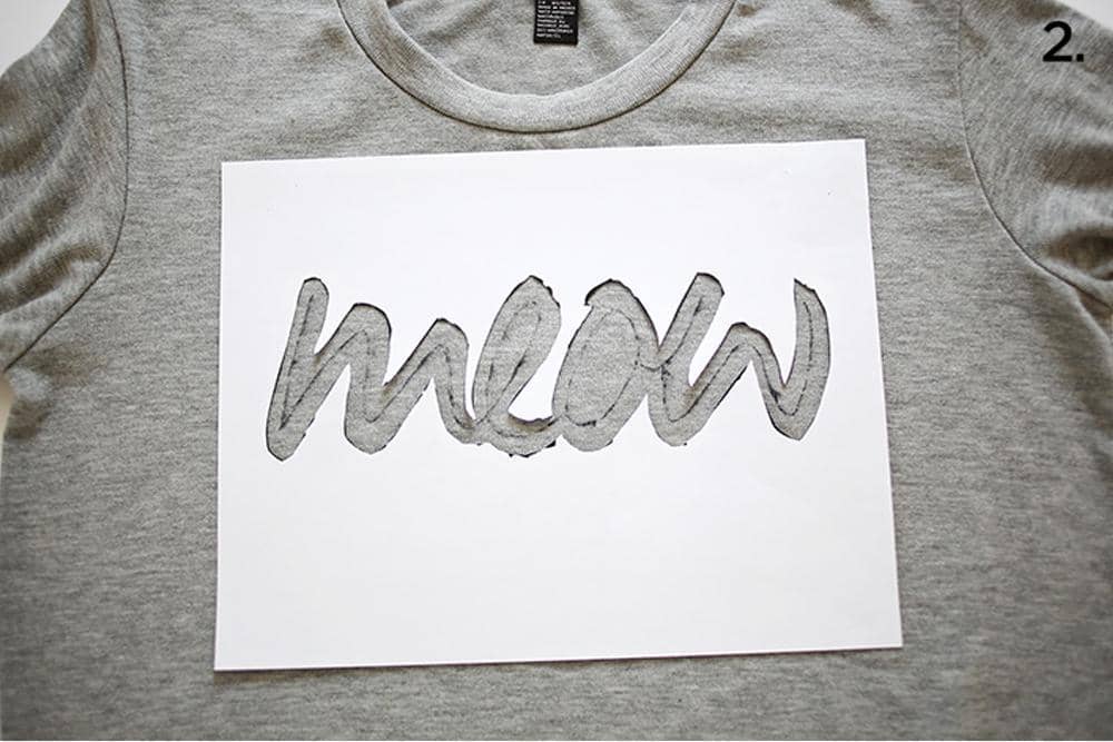 Kemudian gunakan cutter atau gunting untuk memotong pola tulisan yang sudah kamu buat, lalu letakan di sweatshirtmu dan tandai dengan spidol marker.