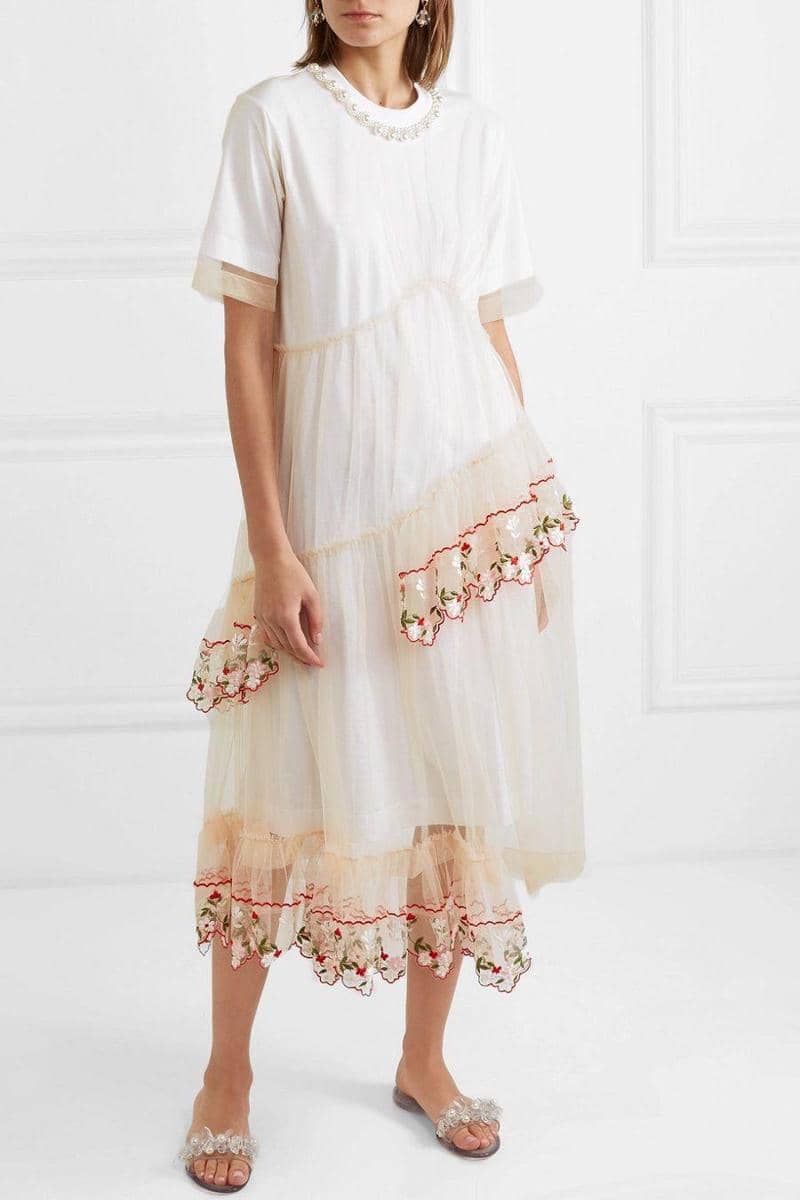 Layered embellished tulle midi dress, Simone Rocha, $734
