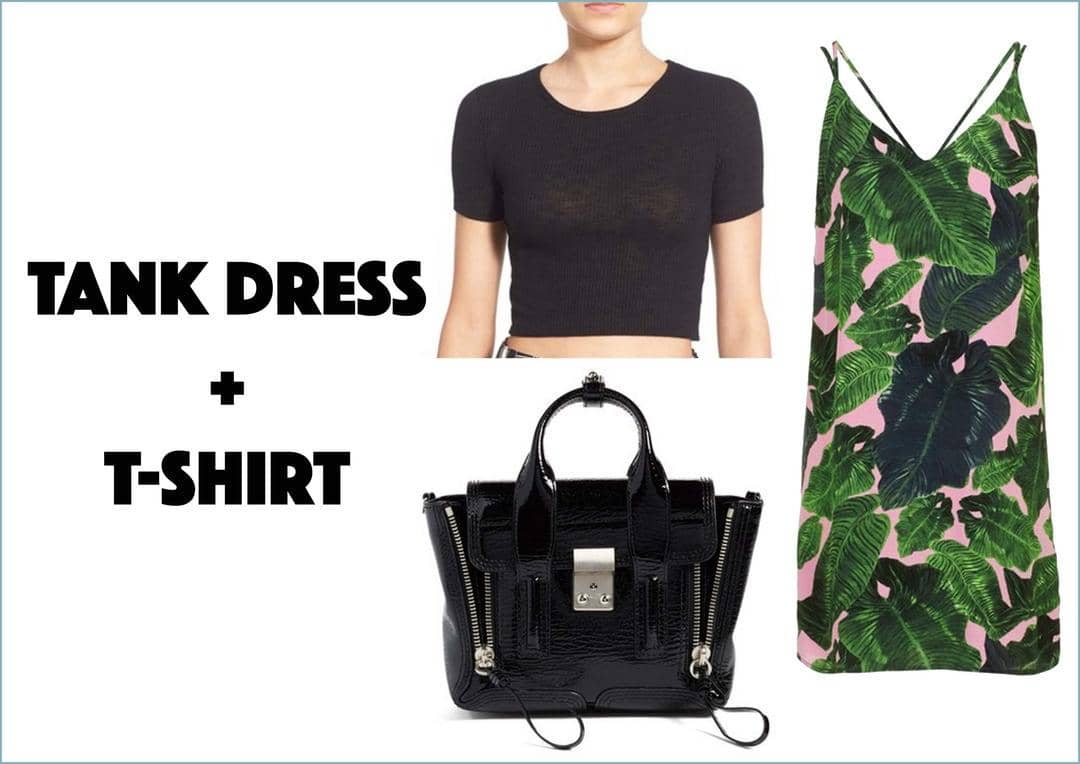 This combo is so in now. Mix and match tank dress bermotif print dengan crop top t-shirt, dan aksesoris satchel bag. Padu padan ini terlihat santai dan nyaman, tanpa kehilangan kesan fashionable.
