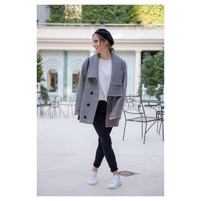 Pada foto ini, Emma Watson mengenakan coat dari Stella McCartney, brand mewah yang memiliki komitmen tinggi akan kesejahteraan lingkungan. Jumper dari Filippa K, brand asal Swedia yang berfokus pada 4R: reducing, repairing, reusing, dan recycling. Kaos dari Boodywear, yang memproduksi bahannya dari bambu organik yang dibuat dengan teknik rajut 3 dimensi. Dan topi baret yang dikenakan Emma Watson dari Maison Michel yang dibuat dari katun organik, sepatu dari Good Guy yang tidak memakain bahan dari kulit hewan.