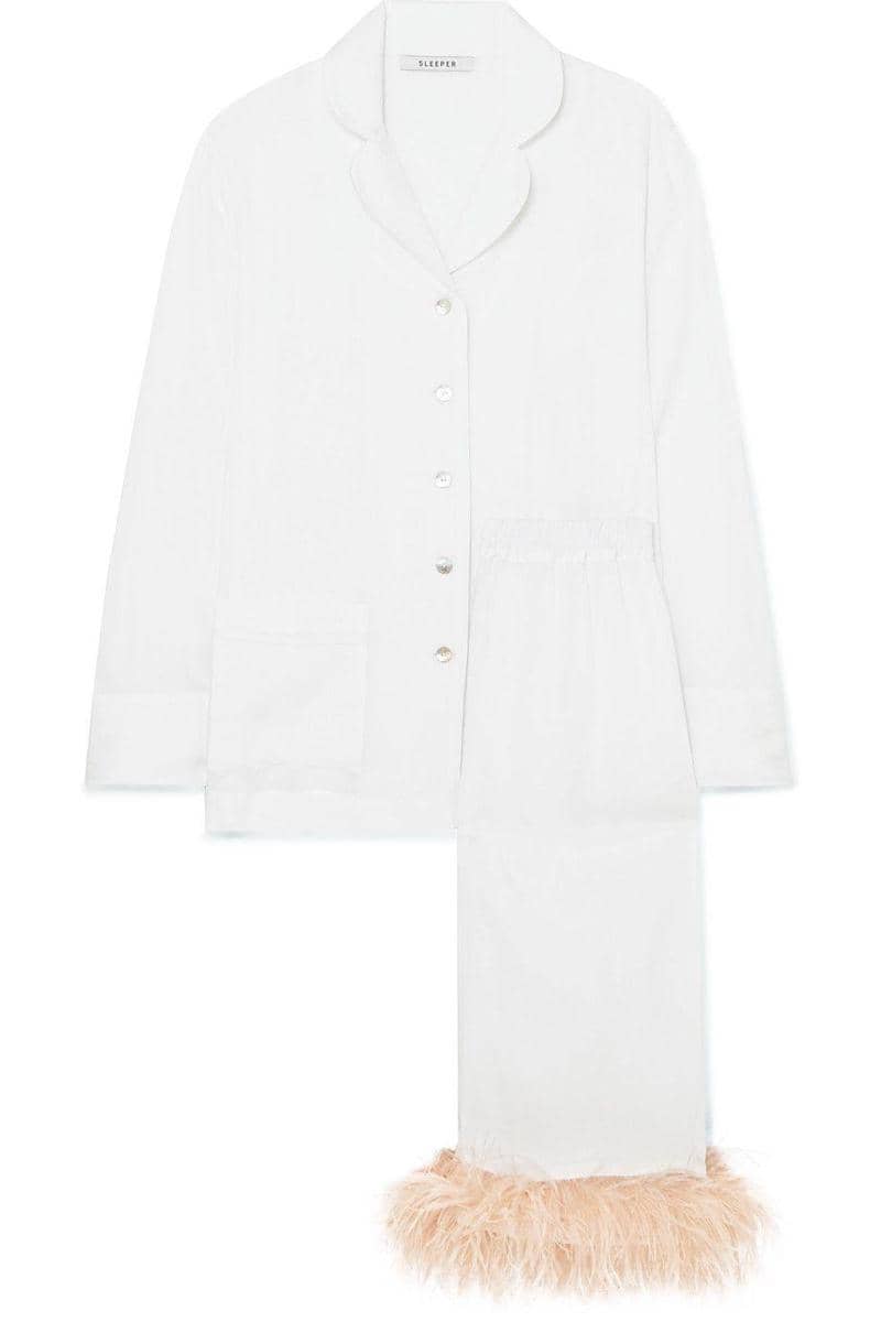 Feather-trimmed crepe de chine pajama set, Sleeper, $224