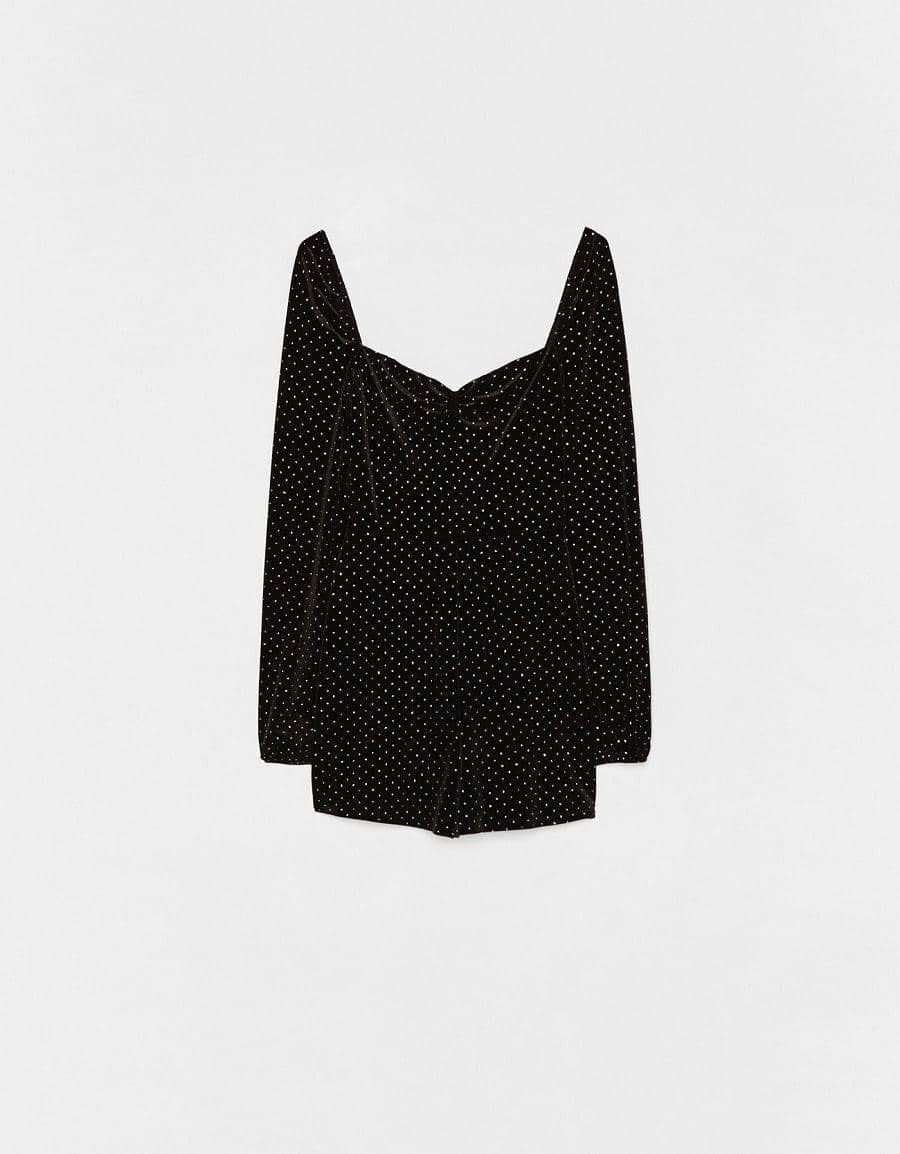 Velvet jumpsuit with shiny polka dot, Bershka, IDR 299,900