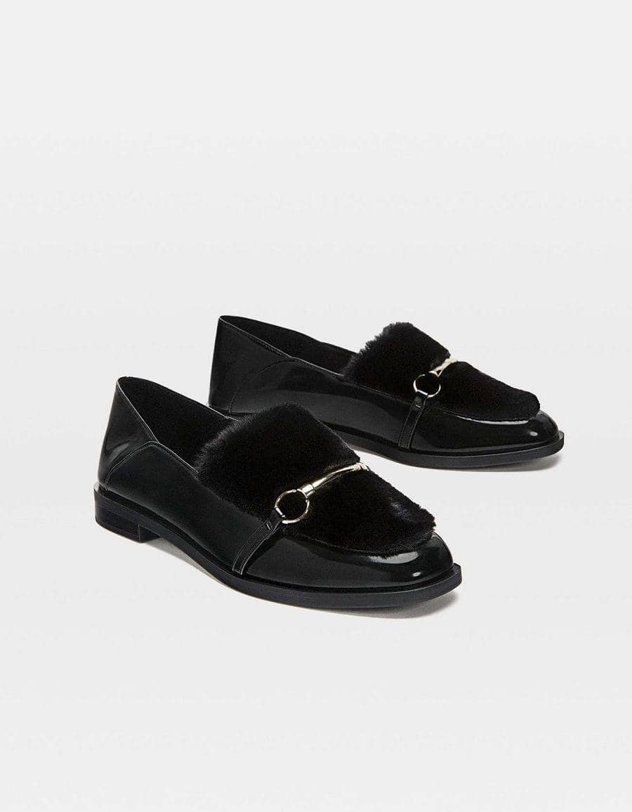 Black flat shoes with fuzzy top, Stradivarius, IDR 559,900