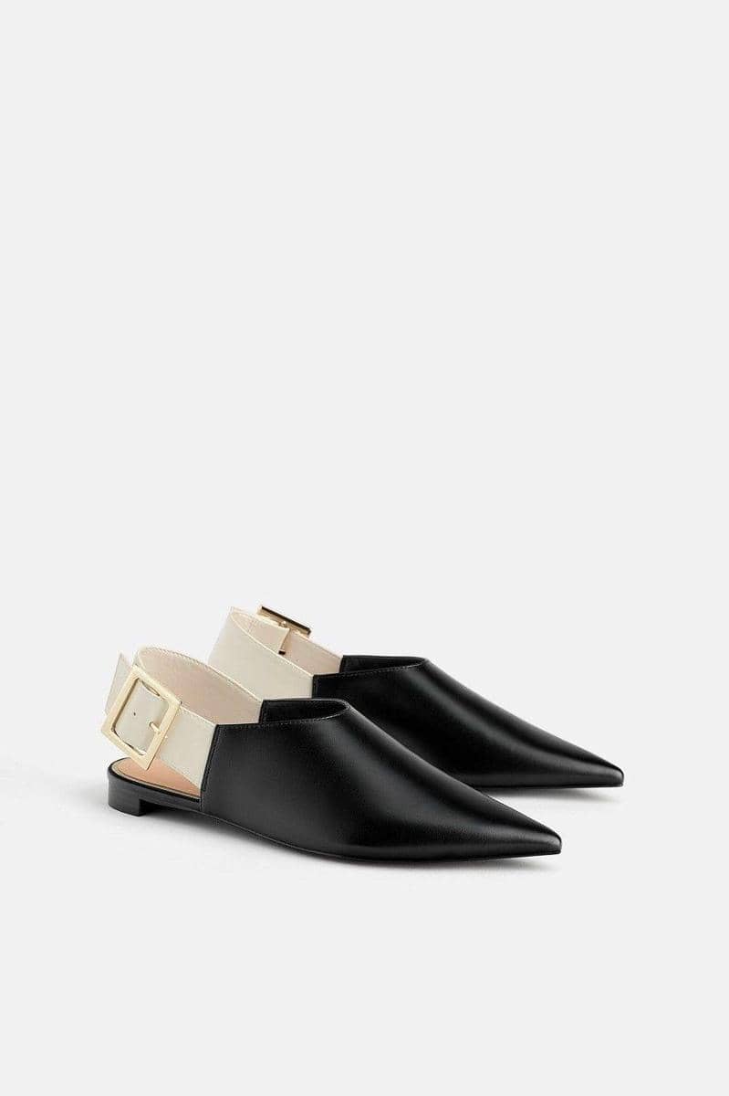 Flat slingback shoes with maxi buckle, ZARA, IDR 899,900