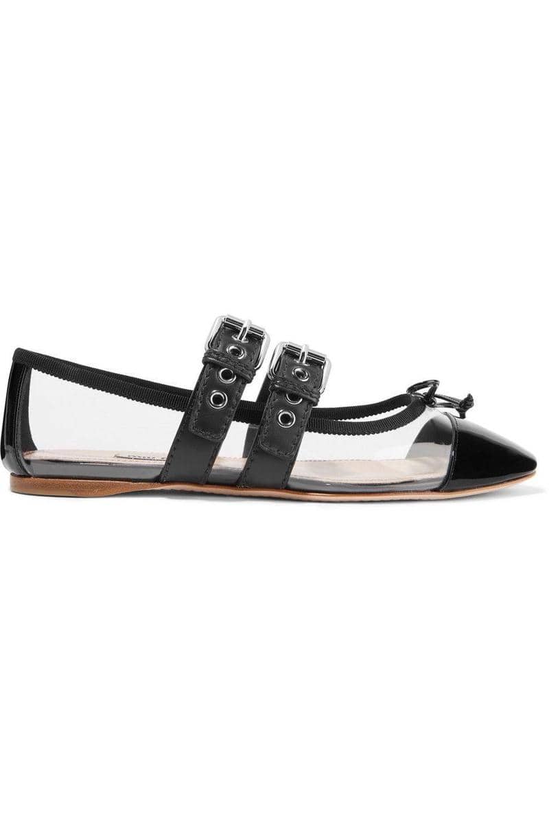 Buckled PVC and leather ballet flats, Miu Miu, $800