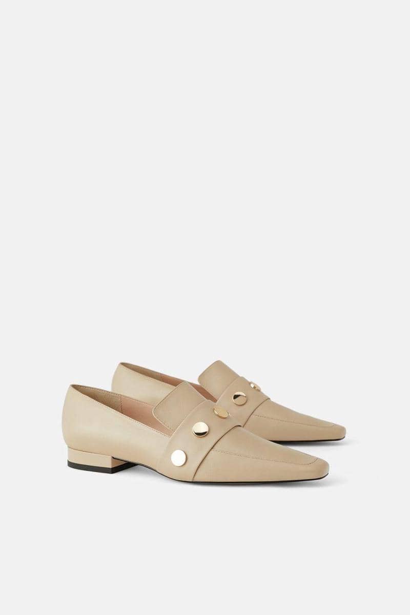Studded leather flat shoes, ZARA, IDR 1,199,900
