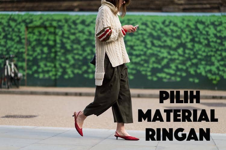Pastikan kamu memilih culottes dengan material ringan seperti jersey ataupun katun berkualitas tinggi. Hindari bahan poliester ataupun scuba yang hanya menambah volume badanmu. Please invest the good one, Bela!