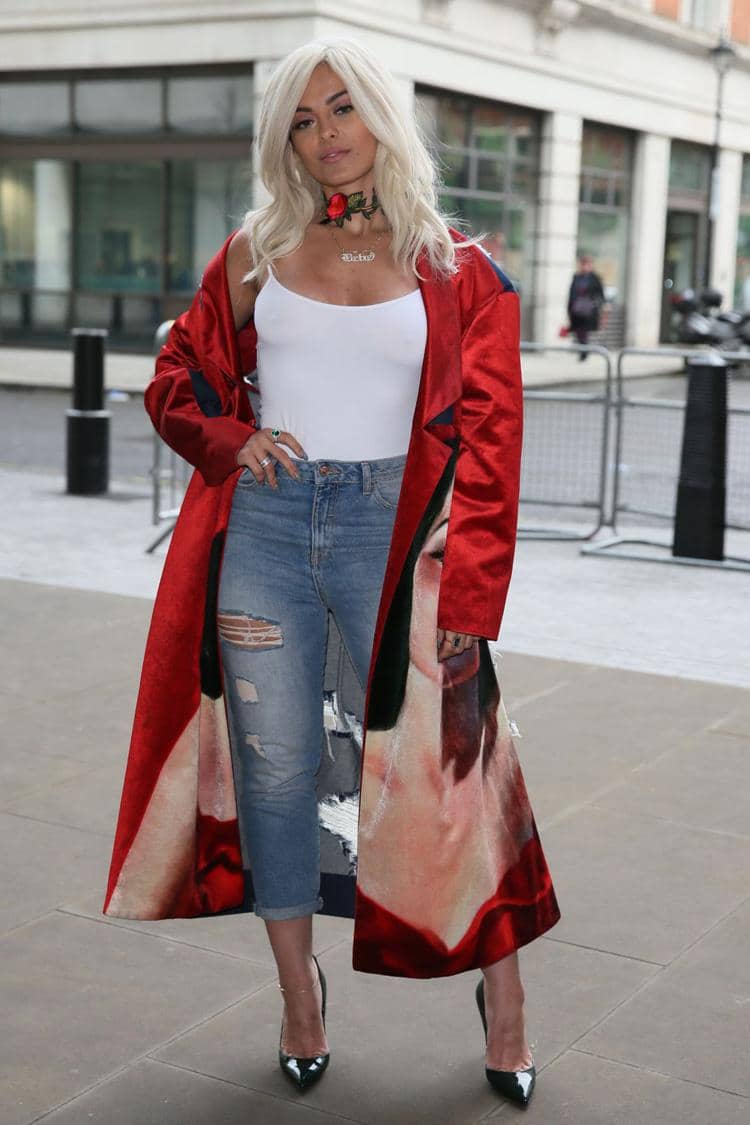 5. Warna merah berhasil membuat gaya Bebe terlihat semakin edgy dan bold.