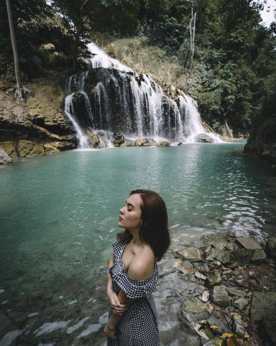 3. Menggunakan tartan off shoulder dress jadi salah satu outfit pilihan Lidi Brugman saat liburan.