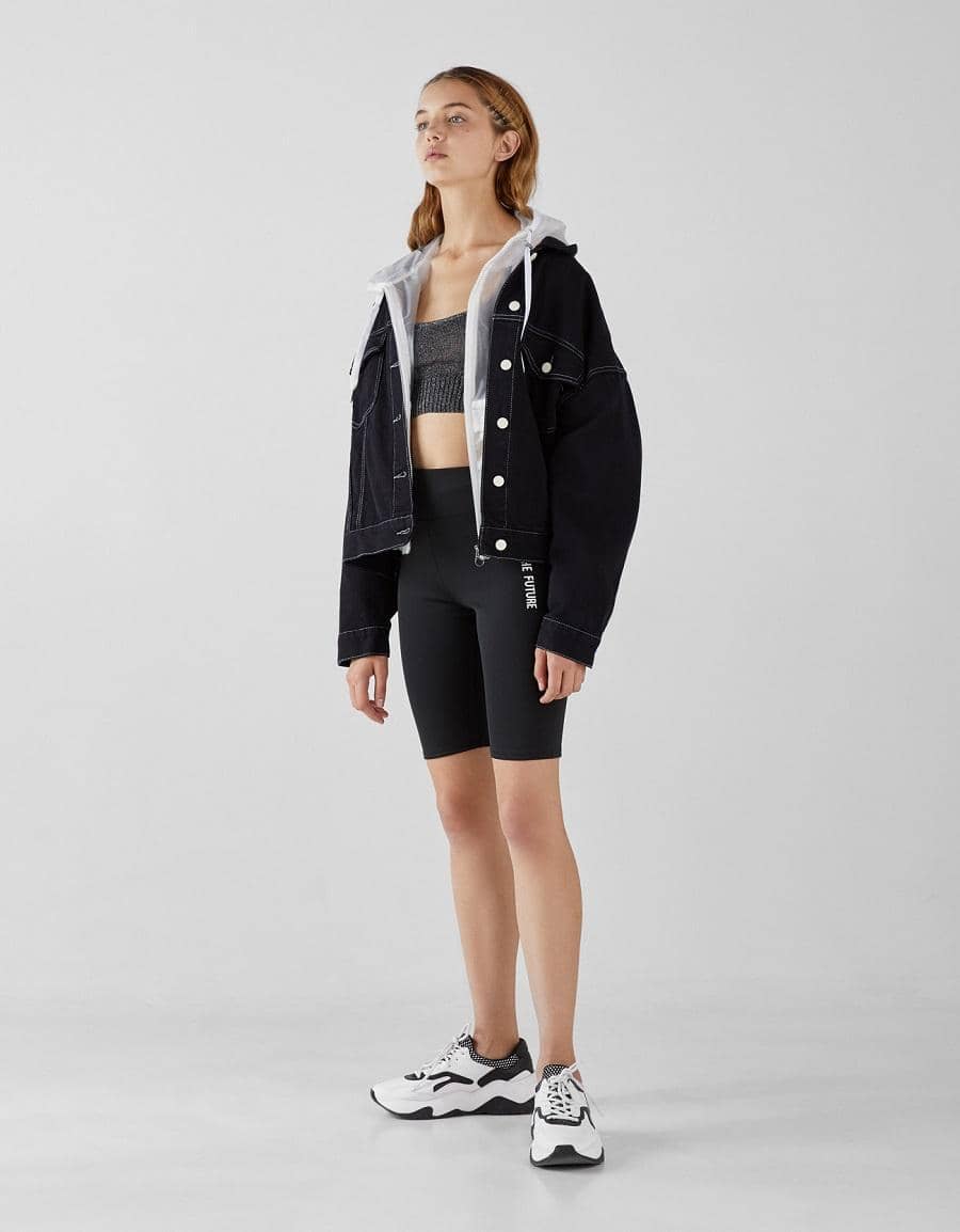 Cycling shorts with side text, Bershka, IDR 299,900