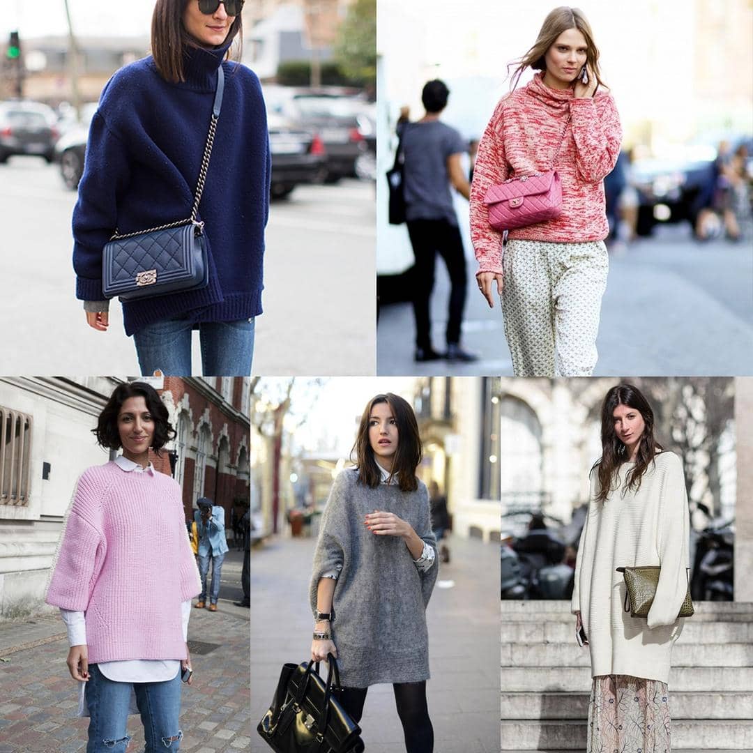 Jenis busana oversized ini mengharuskanmu lebih teliti dalam memilih busana pada bagian lengan, dengan bentuk yang pas membuat penampilanmu terlihat seimbang. It's okay to have wide or turtle collar. Oversized sweater paling cocok dipadukan dengan slim fit pants, pencil skirt, dan midi skirt.