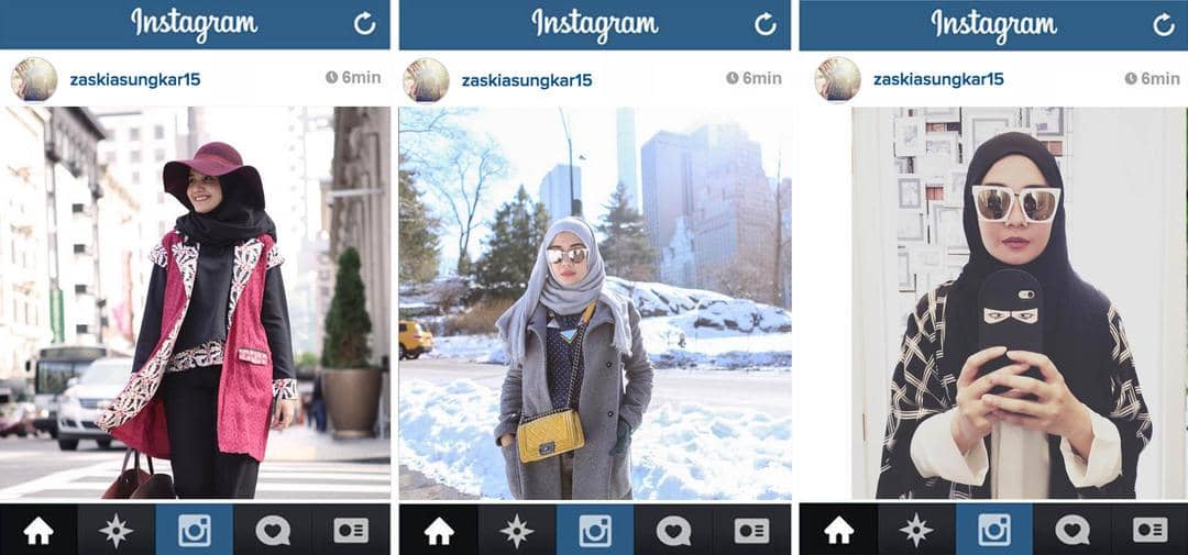 Zaskia Sungkar di awal karirnya dikenal sebagai seorang penyanyi, model dan pemain film di Indonesia. Sejak ia memilih untuk berhijab dan menekuni bisnis di dunia fashion namanya semakin dikenal sebagai seorang fashion designer yang karirnya fashionnya semakin dikenal di mancanegara. Style hijabnya suka memadukan banyak warna berani dan bold, selain itu juga Zaskia juga suka memakai pashmina yang bermotif untuk menutup kepalanya. Selain itu dalam gaya kesehariannya Zaskia juga suka memadukan coat dengan warna muda atau bermotif yang menunjang penampilan kesehariannya.