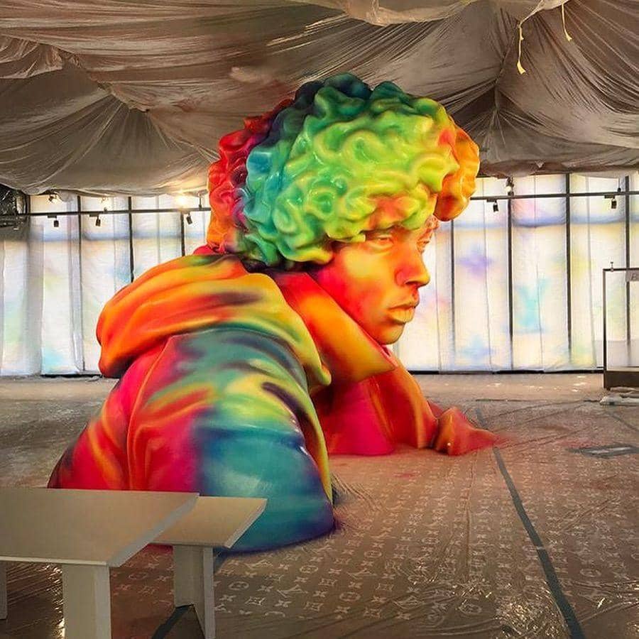 Sosok laki-laki berambut afro ini mengambil inspirasi dari The Wizard of Oz yang juga referensi Virgil Abloh untuk koleksi Louis Vuitton Spring/Summer 2019. Warnanya yang terang begitu mencolok di langit, warna-warni bak bunga dan kuning merupakan simbol dari yellow brick road dari film Oz.