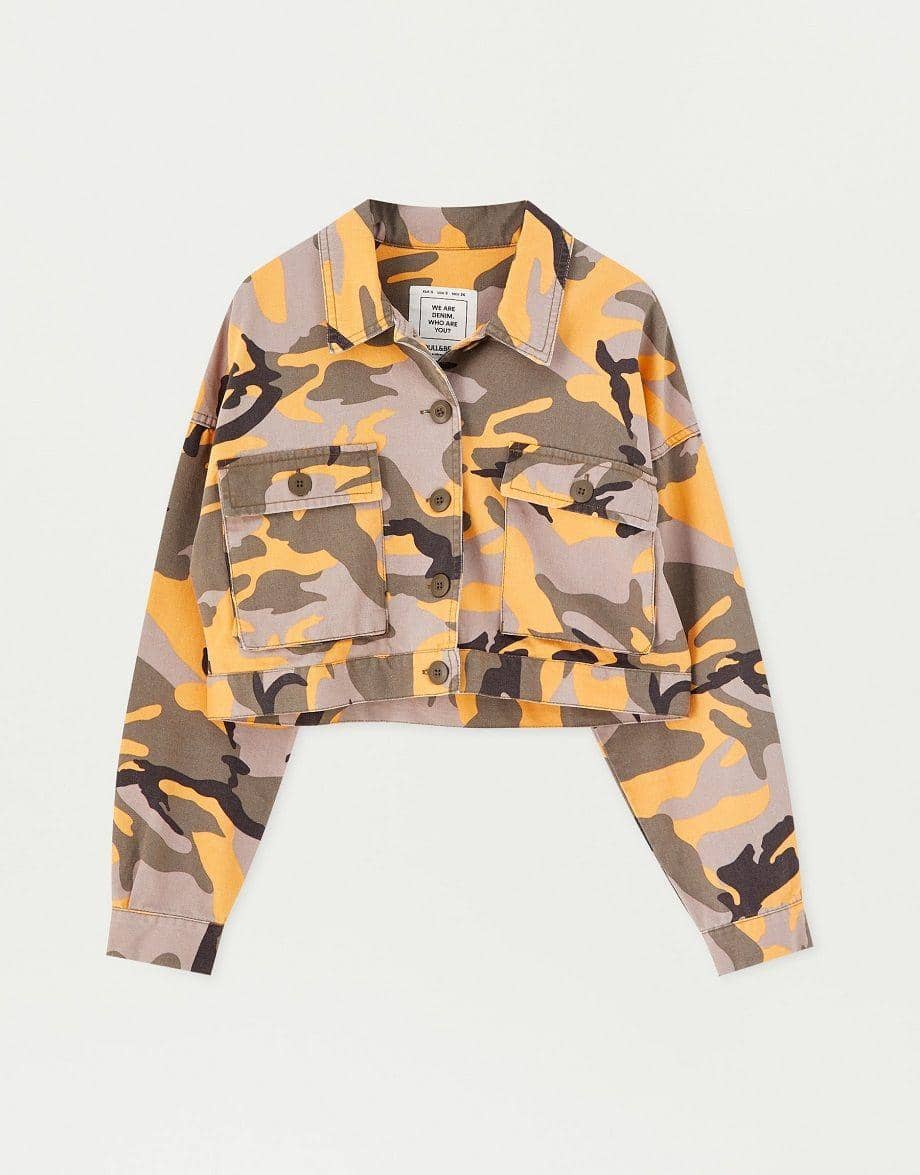 Orange camouflage denim jacket, Pull & Bear, IDR 599,900