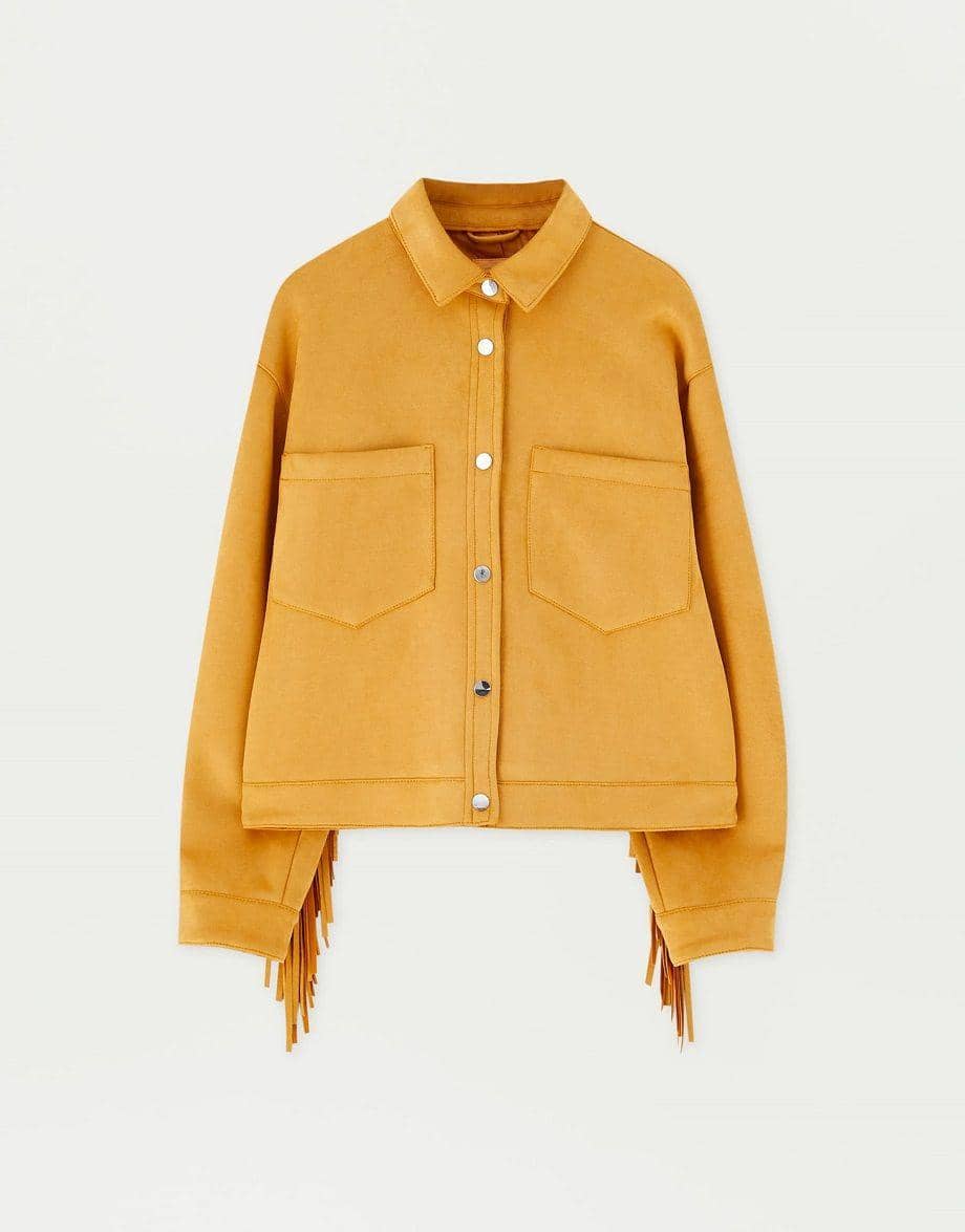 Sadie Sink fringed faux suede jacket, Pull & Bear, IDR 799,900